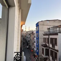 Номер был лучше наших ожиданий, что приятно удивило, фото прилагаю. Отзывчивый персонал, удобное месторасположение, рядом есть магазинчик с едой. Завтраки мы не оплачивали, поэтому о них ничего не могу написать. Номер был уютный и чистый, персонал регулярно осуществлял уборку в номере. Район находится очень близко к туристической Истекляль и площади Таксим, а также метро. Смутило только заброшенное здание напротив отеля (по этой причине сняла звезду за расположение), остальные дома выглядели достаточно прилично, на улице много отелей, чувствовали себя безопасно, когда возвращались вечерами в отель. Снизила оценку за удобство из-за душа без перегородки, так как вода разбрызгивалась по всему номеру. К отзыву прилагаю фото номера, вид из окна и фото улицы вечером.