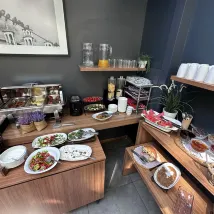 Немного меньше, чем мы ожидали, но в нем есть все необходимое. Ванная комната такая красивая, с синей плиткой по бокам раковины! Все чисто и аккуратно. Завтрак «шведский стол» восхитительный.