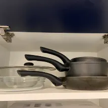 Можно готовить. Есть горячая вода. Есть холодильник. Хорошо сушить одежду. Есть стойка регистрации. Внизу есть супермаркет и кафе.