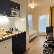 Примерно 15 минут пешком или на общественном автобусе до ближайшей станции RER в центр Парижа, так что учтите это. Сам отель чистый, с мини-кухней, мини-холодильником и прачечной. Довольно большой за свои деньги и тихий. Расположен рядом с жилыми апартаментами, поэтому относительно безопасно. Сам пригород немного суров, но я справился. Тренажерный зал за дневной абонемент в 15 евро (Neoness) находится примерно в 15 минутах ходьбы. В целом пребывание было хорошим.