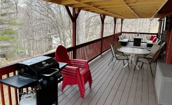 Gas grill available on the back patio deck for outdoor grilling, or grab a glass of wine and sit by the Fire Pit and enjoy the view and take in the mountain air.