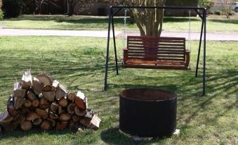 This Tiny house has everything you need and more , sleeps up to 6 w/ 2 lofts with 8" queen size memory foam and a new hide a bed in the living room, full kitchen with Bar, micro wave, toaster/ convection oven and a hot plate, full bath & shower, front porch with a ceiling fan. TV and air condition/ heater, also has an infrared heater ,city water. Animal friendly if (house broken) very rustic walls are yellow pine, cabinet doors are roofing tin, ceiling is made with roofing tin you have lots of head room in the lofts. Lots of parking come in at night no problem the light will light your way. You can park any where on the property,Wake up make coffee it's provided( Folgers) set on the front porch and enjoy the scenic bluff view. If you have kids bring bikes, basketball or football. You will enjoy this getaway.About pets:Pets allowed.Please cleanup after pet dogs only.About checkOut:Check out before 11:00 AM.About children:Children allowed: ages 0-17.Small children should sleep on first floor.About customRules:Please be advised that this property utilizes a ladder to access the loft. By renting this property, you are agreeing to hold the owner and property.(Continuation) manager harmless for any injury or death that is resulting from the use of the ladder..About checkIn:Check in after 4:00 PM.About smoking:Smoking is not permitted.No Smoking &do not use the yard as an ash tray.About minBookingAge:Minimum age to rent: 18.About events:No events allowed.