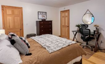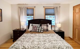 Our home features three comfortable bedrooms, each thoughtfully decorated with a blend of contemporary style and rustic charm. Sink into the plush bedding and let the tranquility of the surroundings lull you into a peaceful night's sleep. Two beautifully appointed bathrooms ensure that everyone has ample space and convenience during their stay.