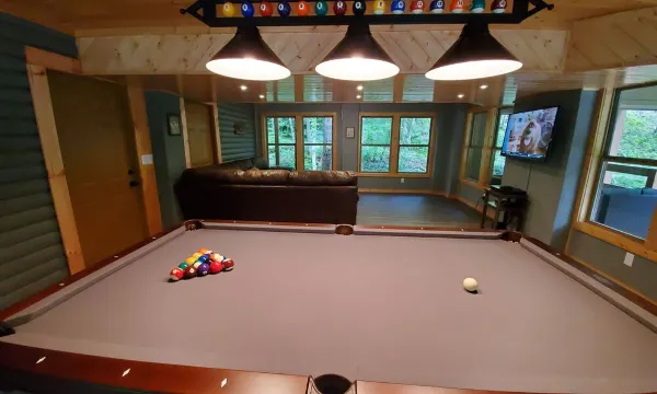 This spacious 3 bedroom log cabin truly has a one of a kind location offering a private pond along with a roaring creek for your enjoyment. The location has multiple outdoor seating areas, screened and covered porch areas and if you can pull yourself away from the gorgeous outdoor setting you will discover a large living room along, fully stocked kitchen plus a bonus den and pool table. The private pond is a great place to cast a line, catch and release, relax by the creek or unwind while playing some corn hole. Come and experience all the beauty and tranquility the Smoky Mountains has to offer.About pets:No pets allowed.About checkOut:Check out before 11:00 AM.About children:Adults only.About checkIn:Check in after 4:00 PM.About smoking:Smoking is not permitted.About events:No events allowed.