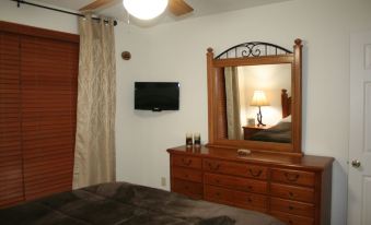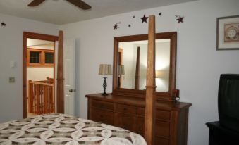 If relaxing is on the agenda, you can enjoy the warmth of a fire in the cozy living room. Central Airconditioning will make you feel comfortable while watching your favorite cable shows or taking advantage of the free Wifi.