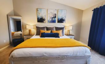 Retreat to the privacy of the spacious bedrooms, each offering plush bedding and ample storage space. The primary suite features a comfortable king-sized bed and an en-suite bathroom. The secondary bedroom offers a cozy queen-sized bed and en-suite bathroom as well. This bedroom layout is perfect for professionals traveling in pairs or roommates.