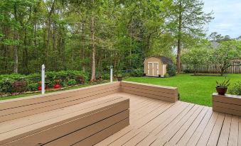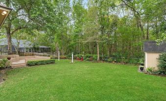 The beautiful lush trees in the backyard and is fully fenced in for pets and children safety. Close to the nature and you can see different color birds humming.