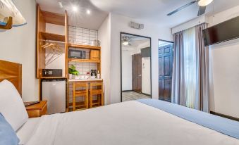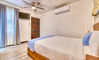Take your vacation to the next level with this well-appointed and perfectly located apartment residence in the heart of Jaco Beach! Just 50 meters to the beach and 50 meters from the center of town. This apartment offers everything you need for the best vacation. Featuring a queen bed, full bathroom with hot water shower, a kitchenette with refrigerator and microwave, high top dining table, TV with premium cable, fast WiFi, and incredible onsite staff to assist you with all your needs.