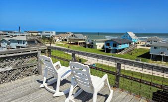 House has a cute and romantic feel with beach decorations and a laid back vibe! The Property consists of 2 bedroom and 2 baths. The master has a king size bed, dressers and night stands with it's own bathroom. The guest room has a queen size bed and a full size futon. The living area has 1 sleeper sofa. House sleeps up to a family of 6 (per Jamaica Beach's Karen/Darren rules) Short-Term Rental Registration Number STR25-000050. The house has amazing views because there is a deck on main living area and a top deck with 360 degree view. Can see the Gulf and Bay. (Please note that the house is a beach cottage and about 864 sqft). Check in 4:00 pm & Check out 11:00 am. House additional amenities: some games, some videos, books, toaster, coffee maker with filters, a Kuerig coffee maker, blender, some basic spices, and both a small gas grill and charcoal grill on bottom floor parking area. We offer clean quality linens and comforters, Smart TVs with popular apps loaded in living room. 2 Blu ray Players with one in guest room. Free WiFi on site with code when requested. There are chairs on the deck. This property is about 130 yards from the water and does have an awesome beach view.