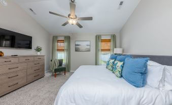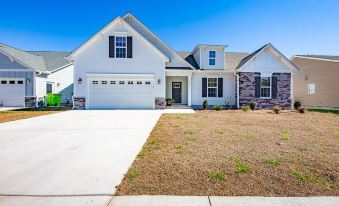 Nestled in the heart of New Bern's desirable neighborhood, this charming newly built 3-bedroom home offers a perfect blend of comfort, convenience, and style for all travelers.