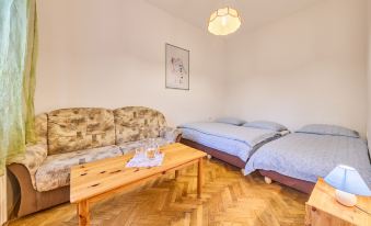 Cosy, rustic residence "Villa Belvedere", detached. 10 apartments in the residence. In the resort, 200 m from the centre, in a sunny position, 500 m from the skiing area. In the house: central heating system. Linen change (suppl. charge extra). Towel change (suppl. charge extra). Room cleaning on request (extra). Parking at the house, public parking extra. Grocery 300 m, restaurant 50 m, bus stop "Janské Lázně - Lesní dům" 300 m, railway station "Svoboda nad Úpou" 3.3 km, park "Farmapark Muchomůrka" 1 km, outdoor swimming pool 7 km, indoor swimming pool 400 m. Tennis 1 km, minigolf 400 m, cycle lane 100 m, cable car 600 m, ski lift 300 m, chair lift 500 m, gondola lift 600 m, slopes 300 m, ski rental 300 m, ski school 400 m, children's ski school 300 m, sled run 700 m, cross country ski track. Nearby attractions: Lanovka na Černou horu 600 m, Janské Lázně Spa, Stezka korunami stromů 1 km, bobová dráha 5 km, Pec pod Sněžkou, Relaxpark, bobová dráha 11 km, Vrchlabí 10 km, Trutnov 12 km, Malá Úpa 15 km, Zoo Dvůr Králové, Adršpach 35, Karpacz 40 km. Well-known ski regions can easily be reached: SkiResort ČERNÁ HORA - PEC, Mladé Buky 5 km, Horní Malá Úpa 16 km, Špindlerův Mlýn 30 km. Hiking paths: krkonošské naučné stezky. Please note: no lift. 3-room apartment on the ground floor. Bright, beautiful furnishings: living room with 2 beds and TV. 1 room with 3 beds. Kitchen (4 hot plates, microwave) with dining nook. Bath/WC with corner bath. Facilities: Internet (WiFi, free). Please note: suitable for families. TV only CS.