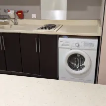 房間乾淨寬敞,有廚具和洗衣機,比較熱情。期間汽車電瓶虧電,前台還幫我找了人解決了。