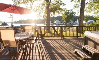 Kick back and relax in this calm, stylish space. Cheerful 3 Bedroom 3 bath with outdoor hot tub overlooking the lake. The 3 Bedrooms include 1 King Master and 2 queen size beds. In addition, there is an inflatable air mattress if needed. High quality Modern kitchen for every Chef. The living room is equipped with a pool table and big screen 65" TV with high speed internet and free Wi-Fi . 2 kayaks for a fun time on the lake and a BBQ grill are available as well . Come live and breathe the dream !
