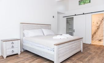 3 spacious rooms, two rooms have their own bathroom/shower upstairs. Downstairs has full bathroom. Location is nice and private. Only downfall would be not having direct lake access you have to go to the beach to the right of the property thats a few feet away so not a big deal at all. House has all amenities besides shampoo/soap in the showers so bring. House was clean, spacious, and modern.