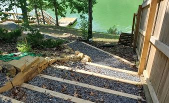 Beautiful and peaceful lakefront house with a private dock on Lake Douglas, only 25 minutes from Pigeon Forge and Gatlinburg. The house is a 4 bedroom home plus a game room with additional sleeping. There are a total of 8 beds in the house with sleeping for up to 10. The upstairs has a spacious master bedroom with a queen and a full bathroom. The second bedroom comes with a queen, and the 3rd bedroom has a full and a twin bed. There is a new full bathroom in between these two bedrooms. The kitchen, dining, and living room are combo rooms on the main level. The downstairs has been completely remodeled over the winter. There is a new game room, a new theater room with recliners, and a new 50-inch HD TV. This room houses a day bed with a trundle that sleeps two, and also new bunks beds with a twin and full mattress. This is a perfect setup for the kids or a second family! The game room has a ping pong table, poker table, and refrigerator. Both decks have gates so no little ones can escape. We've built a new walkway to the water, complete with a platform at the lake for relaxing that steps down to the lake and a floating dock. There is a landing about 5 miles from the house by car if you want to bring a boat. H2O rentals are only about 1/2 mile up the road for anyone who wants to rent boats or jet skis. Dandridge is the closest town and it is about a 10-minute drive with restaurants and a grocery store. This lake is dam controlled so you have water from May-late September. Water begins to recede in the fall and with no water in the cove through the winter months.