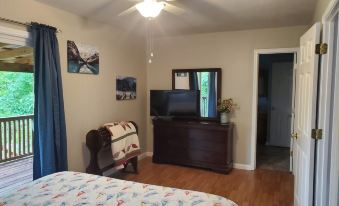 First off, the location of this property was perfect. It was 10 minutes from downtown Dandridge with a large grocery story that was well stocked and housed a Starbucks. Unlike Gatlinburg and, Pigeon Forge, there was hardly any traffic. However, most any attractions we were interested in were within 40-45 minutes drive time with beautiful Mountain Views and wildlife. In eyesight of the property across the cove, you will see a marina. We took advantage of their pontoon rentals, and they also have jet skis at a reasonable price. The on-site fire pit and hot tub were very nice. Some tips if you’re going to rent, this property would be to bring your own beach towels. There was only one at the property. There are plenty of towels to use, but they are very small and quite scratchy. You will want to bring your own hand soap and cleaning supplies as none were provided or left on site. The owners do start out with two rolls of paper towels, and several rolls of toilet paper. We purchased and left two skillets at the property, so there will be adequate pans to cook. Other than that anything else you may have needed is located on the property. We would definitely stay here again One of the highlights I would like comment on is the Cove the property is located on. The water was very clean and deep enough that you could dive off of their floating dock. This was a daily family activity for us. Absolutely wonderful location and home.