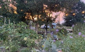 Backyard Garden: Escape to our serene garden with various outdoor seating options.