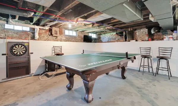 Beds stink. Uncomfortable,ow to ground and squeak so loud everytime you move, the dogs in the neighborhood start howling. Lights are a mystery. Half the house is heated. Shower water pressure is terrible and the shower is super slippery. Kitchen is all well and good but cold. Basement is very cold, games are fine, TV, and couch. Couches are uncomfortable and are supposed to be sleepers, but not really. Laundry room is very small and hard to navigate. Backyard was underwater the whole time as it rained and snowed. Overall, needs work but serves it's purpose, I suppose