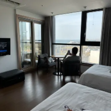 근데 오션뷰가 너무 예뻐서 아주 좋았습니다. 좋은 방으로 두셔서 감사했어요. 전반적으로 가성비가 아주 좋고 깔끔해서 재방문 의사 있습니다.