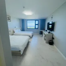 Номер просторный и очень тихий. На четвёртом этаже есть смотровая площадка. Спереди открывается вид на море, а сзади — на гору Халла. Идеально для спокойного отдыха!
