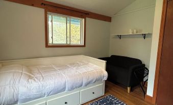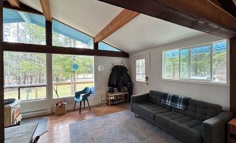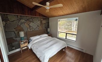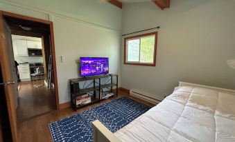 Our cozy cabin features two bedrooms, one with a queen bed and one with a twin bed that expands to a King. The living room and queen bedroom have floor to ceiling picture windows, bringing the outside in. The kitchen is stocked with everything you need and the brand new appliances and grill make cooking easy and enjoyable. The cabin is on two acres of land with large front and back lawn space and woods. We have reverse osmosis filtered drinking water, a vitamix and a programmable coffee maker. There is a wood burning stove to keep you extra cozy. The cabin is clean, simple and modern with a rustic feel. It is the perfect blend of comfort and beauty. All linens are super soft and we always use duvet covers for extra comfort and cleanliness. The wrap around deck is perfect for your morning coffee while looking at the mountain view and peeking at the birds.