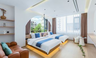 We skillfully blend modern technology with cozy guesthouses to create a unique smart accommodation environment for you. All guest rooms are equipped with a smart voice control system called "Xiao He", allowing you to control all lights, air conditioning, projectors, and smart curtains in the room using voice commands from any corner. The smart central control system can play any song you like. Each room is equipped with a separate 500Mbps fiber optic internet connection, 1080P video and audio, to meet your entertainment and rest needs, as well as office work. It brings you an immersive experience.