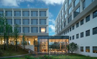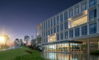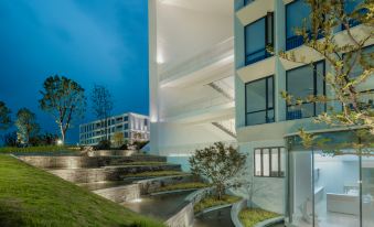 酒店建築設計很現代藝術風,有足球場,羽毛球館,乒乓球,室內小童樂園,露營草坪,游泳池,都可以免費使用。還有個書吧也很安靜,喝杯咖啡坐一坐也是個不錯的選擇。酒店綜合樓還有很多會議室培訓室。