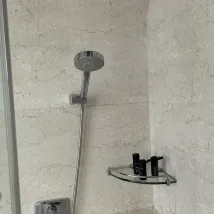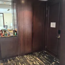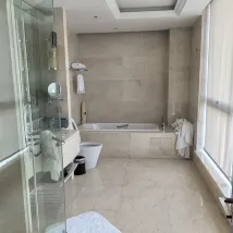 Когда я впервые вошёл в номер, я всё ещё чувствовал какой-то запах; душевая лейка была зафиксирована, а высота душа составляла всего около 1,6 метра. Стандарт для большинства отелей — 1,8 метра. Кому захочется опускать голову и наклоняться, чтобы принять душ? На ванных комнатах не было никаких брендов. Разве это стандарт для пятизвёздочного отеля? Робот принёс еду, но она прибыла только через 45 минут. На стойке регистрации сказали, что робот был, но никто не позвонил, чтобы напомнить. Тогда мне сказали открыть дверь и ждать робота. Они что, издеваются надо мной, потому что я не останавливался в других отелях? 😓