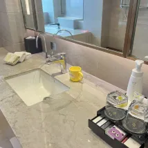 We moved rooms twice but we did not get a perfect room. The rooms smell like cigarettes even when we requested for a non smoking room. The bathtub is clogged and won’t drain. The staff seemed bothered when we asked for help. I know it is hard to accommodate English-speaking travelers, we used translator apps to communicate, but their faces seemed annoyed at us. Though, the breakfast buffet is great. Will not be back.
