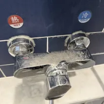 Отель находится совсем рядом с северными воротами источника Баоту, в 3 минутах ходьбы, а напротив находится полицейский участок. Номер совершенно уникальный и соответствует своей цене. Не знаю, в чем проблема: в воде или в чайнике, но на поверхности водопроводной воды плавает слой маслянистого вещества. Я не решился пить ее, поэтому попросил на стойке регистрации еще две бутылки воды, которые мне принес робот.