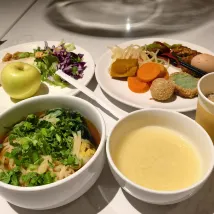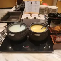 早餐的雞湯餛飩味道還不錯,深夜粥道的八寶粥和小鹹菜味道也很好,服務也很好,下次還會選擇亞朵