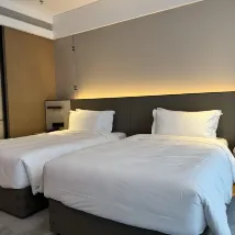 The hotel is nice and new but unfortunately I got some negative impressions. The cleaning of the room when I arrived was good but after the first night I had the feeling, that it was just a 5 minutes cleaning activity. Furthermore I detected that the room itself was to cold when the air conditioning was on or to hot when it was off. I didn’t find a way to adjust it in a good way. The worst experience was at the check out, because they deducted from my deposit 4 breakfasts. I only realised it when I already left the hotel. I had to come back to get it sorted out.