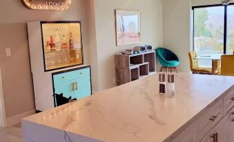 Home is newly renovated with mountain & desert views, minutes from the village where you’ll find the Farmer’s Market, Joshua Tree Coffee, Bottle Shop, the Rock Shop & Joshua Tree Saloon