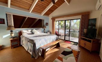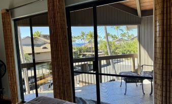 This is top, airy, spacious unit with high ceilings, but it does have stairs. For sleeping accommodations, there are two beautifully appointed bedrooms: The top floor houses the master suite with a king size bed and en-suite bathroom & walk-in shower. The downstairs bedroom has two beds, a queen and single and the bathtub/shower on the main floor has grab bars. Both bedrooms have their own private lanai, each with ocean views! The living room has a recliner chair and smart TV with access to streaming channels. The large living room/dining room has an ocean view with a spacious lanai/balcony. The main lanai also provides a large dining table. The kitchen is fully outfitted with everything you need to prepare a simple snack to a gourmet meal.