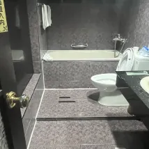 The bed was comfortable enough to sleep on. The toilet was spacious and nice. Although it’s a bit old, we had a great stay.❤️