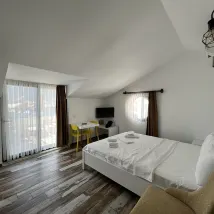 Отличное расположение в Каш, очень чисто в номере. Хорошая мебель и техника, удобные зоны, есть своя парковка вокруг здания. Есть сушилка, но нет полотенец для пляжа.