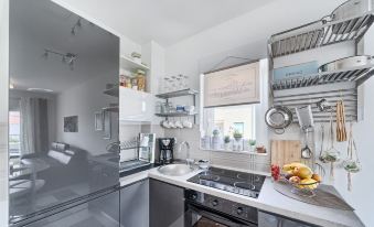 we have this cozy and modern apartment with sea and mountain view from the balcony. In the newly built house (2017) there is an elevator and in the apartment you have Air Condition, Wi-Fi, Ultra HD TV with Netflix.