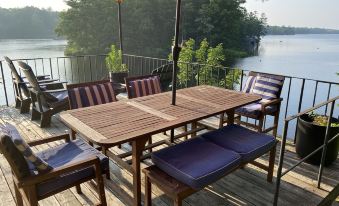 This cottage was delightful and had everything we needed. We were a mix of families and there was ample sleeping space and tons of outdoor space to eat, swim, and lounge. The dock was awesome and the swimming and kayaking (including the swimming pad) were perfect for adults and kids alike. Owners were responsive and helpful. Would definitely rent this again!