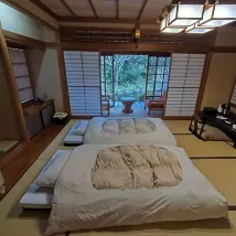 Размещение было превосходным, с горячими источниками как внутри, так и снаружи, что позволяло проводить там много времени. Рекомендую приезжать пораньше, чтобы насладиться ими. Татами не были прогреты, поэтому спать на них было очень комфортно. В целом, всё было превосходно. Есть также частный онсэн, но я им не пользовался.