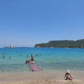 Выбирая отель отталкивались от того, что в отеле не будет развлекательных программ поэтому поближе к платным пляжам. ОТЕЛЬ: старый, изначально был 2х этажный, далее достроили еще этажи, в первую же ночь сломался кондиционер, через пару дней потекла раковина. Лифт 1!!! Это ужас, в часы выселения/заселения невозможно было дождаться лифт Номера на двоечку, можно уже и обновить, постельное с дырками попадалось Прилетели в 7 утра, за донат заселили в 10 где-то, браслеты выдали сразу, и мы сходили позавтракать ПЕРСОНАЛ: один админ разговаривал на ломаном русском (весьма не приятный персонаж) остальной персонал в основном понимали только на англ ЕДА: самая отвратительная еда за все время посещения турции (5 раз была) рыба была только вареная, так за 2 недели посещения не дождались, морепродуктов 0, мясо на любителя, выбрать можно конечно, но весьма скудно, зелень/овощи были в избытке, фрукты- арбуз/дыня- вкусные, слива, деревянные персики/абрикосы Про алкоголь ничего не могу сказать, особо не пьющая, пиво местное как обычно, коктейли- как попадете на бармена ВАЙ-ФАЙ: ловит только в фойе, за столами под навесом, около бассейна нет, на пляже и подавно. ПЛЯЖ: каменистый, 2 входа, один с крупными камнями, другой с мелкой галькой, лежаки на пирсе платные 5€ в день Бассейн небольшой, чистый, но в жару +37-40 приятно было окунуться) Уборка в номерах была хорошая, это единственный плюс, огромная благодарность этой прекрасной женщине, очень внимательная, через нее быстро решили по протечке в ванной В один вечер приходил петь молодой человек, это было единственное развлечение за 2 нед. ! Еще один неприятный момент, к собственнику отеля приходили гости, им поставили красивые бокалы, скатерти, официанты суетились только около них, интересно чем обычные посетители не заслужили красиво накрытые столы и красивую посуду. Стоимость 300к в июле, оно того не стоит, хотелось побыстрее вернуться домой, несмотря на то, что мы почти каждый вечер сами ходили развлекаться, раза 2-3 ходили на платные пляжи, рекомендую декапо, вход там песчаный, удобные диванчики, стоимость 30$, цены на еду приемлемые Пляж пляж перед бухтой (перед макдаком - первый наш неудачный поход)- вход каменистый, диванчики 50$, зонтики из материала с дырочками, сгорите