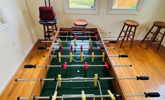 ProsVery clean Location is great. Less than 2 miles from a few metro stops Fully functional kitchen- coffee pot/tea kettle/pots/cutting boards and more Multiple dining spaces-bar/dining room/outside seating Good backyard space Hosts were polite,kind and very responsive Upstairs bunk beds were comfyUpstairs large bedroom has a desk perfect for working and a comfortable bedFun foosball and mini pool tableCons Main floor bedroom mattress wasn’t supportive