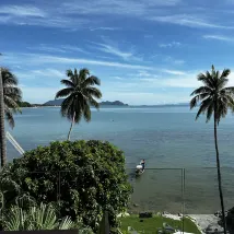 Это хорошее место рядом с морем. Персонал и владельцы очень, очень, очень милые и услужливые почти во всем, что вы хотите сделать или куда пойти. Это тихий район пляжа Кханом, но этот район очень близко к городу Кханом, в нескольких минутах, близко... Но я все равно советую вам либо арендовать машину (там или из пункта прибытия в аэропорт), либо арендовать мотоцикл там, в Кханоме, для лучшего осмотра достопримечательностей и безопасности, так как я не советую ходить по главной дороге. Как я уже оценил ранее, номера хорошие, но они очень большие, в большинстве есть глубокая ванна на балконе. Ничто не идеально, но номер настолько большой, что я думаю, что им нужен диван или шезлонг в номере и на балконе, так как он достаточно большой, чтобы вместить все это и в то же время быть очень расслабляющим, глядя на остров Самуи на заднем плане. Я скажу, что в отеле надежная система безопасности, даже у горничных нет ключей доступа к вашему номеру, поэтому, если вы хотите, чтобы его убрали, вы должны предоставить свой ключ уборщикам или сотрудникам стойки регистрации, чтобы они убрали (Примечание: я действительно предлагал уборщикам выдать им (главный) ключ... они ответили, что, возможно, когда-нибудь. В этом отеле есть/есть несколько ресторанов, баров и магазинов быстрого питания, все в пешей доступности. Так что технически вам не нужно далеко ходить, но вы должны исследовать красоту этого района, поэтому я предлагаю попутешествовать, даже посетить различные (общественные) места на пляже Кханом.