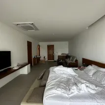 Пляжный отель, но нет пляжа В тот день, когда мы переехали, нам досталась кровать, обращенная пальцами ног к морю. Ванная комната в этой комнате является той же частью, что и спальня. Ванна находится на одном уровне со спальней. Принимая душ, будьте осторожны, чтобы вода не попала в спальню. В день моего приезда я столкнулся с ситуацией, когда вода не текла с 21:00 до 3:00 ночи. Пришедшая вода была очень мутной. Вы можете использовать его в ванной, но можете мыть лицо или тело, в зависимости от человека. Но, вероятно, это случается не часто. Лично я, вероятно, больше не поеду.