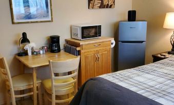 This 240 sq. ft. studio comes with a full bathroom, a beautiful new walk-in tiled shower, a very comfortable queen size bed, AC, ceiling fan, refrigerator, a microwave, 4 cup brew coffee maker, toaster, dishes glass ware and utensils. It has cable TV, Wi-Fi, and USB chargers.