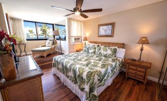 The bedroom is a tranquil retreat with a king bed, reading alcove and even a small desk, all with that incredible beachfront view! For those who enjoy beach walking, Sugar Beach is the best on Maui, with miles of unobstructed beach along the edge of a bird refuge.