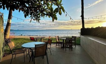There is a gated pool and two separate bbq areas, as well as a grassy lounge area by the beach. The beachfront lawn area has lounge chairs, umbrellas as well as tables for dining outside or to enjoy watching the incredible Maui sunsets or the Humpback whales as they frolic offshore (seasonal). These areas are shared with the other guests in this low-density complex (only 24 units total).