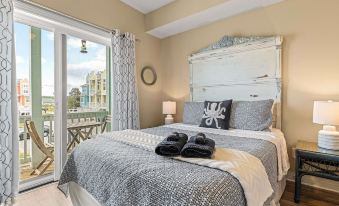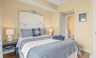 Break Time is a Bermuda Bay Dream Vacation Destination! This beautiful, professionally decorated townhome is fully furnished with every convenience. This family-friendly beach condo offers 3 bedrooms and 3.5 bathrooms, a fully furnished kitchen, bistro table, eat-on bar, dining area, living room, fireplace, free WiFi, and cable TV in every bedroom. There are multiple decks to relax, and a charcoal grill to barbeque and enjoy outdoor dining. This immaculate property sleeps 7 with one King bed, one Queen bed, and fun bunk beds with a lower full size mattress and a twin up top with a pull out twin trundle mattress. We provide clean sheets and towels for your convenience and comfort. The upper level is a large guest suite with a bunkbed and pull out trundle, and a play area with a foosball table. The lower level garage has been renovated into a great entertaining area with a TV, Nintendo Wii, dartboard, a full-sized table and lounge furniture, and plenty of space to play various games. There is a parking space in front of the garage and an extra reserved parking space.