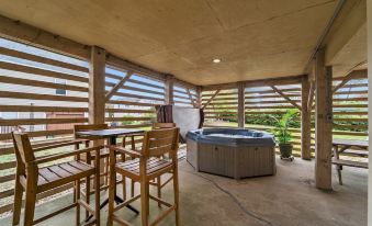 Yard Notice: The yard is currently in transition after years of overgrowth. We recommend guests use the concrete patio area under the house instead, which includes a picnic table, hot tub, and bar seating.