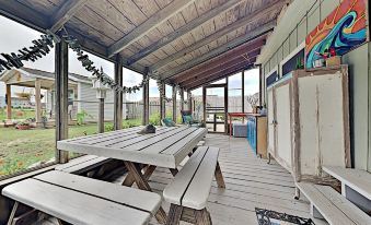 Sit on the front deck chairs and enjoy breezes from the Atlantic Ocean! When you open the door, the updated beach home comes with coastal furnishings and airy decor that will make you feel like you live on the beach. The large updated kitchen with stainless steel appliances (range, fridge with ice maker, microwave) and open bar provides a terrific entertaining area for guests. The open living room comes with plenty of seating, high speed internet & cable, 55" smart TV (equipped with Hulu and Netflix), dvd player, and a surplus supply of board games and puzzles for your family’s delight.