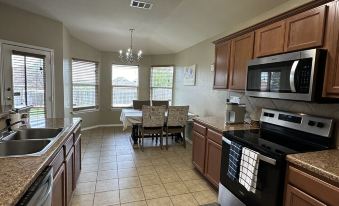 Welcome to our spacious family-friendly retreat with a hot tub and sunset views! This four-bedroom rental home is perfect for families and pets, offering board games and a fully equipped kitchen. With two bathrooms for comfort and privacy, plus a private garage. Conveniently located 2 minutes from YMCA, Sam's Club, and US-190 highway, and near Purser Family Park with a dog park and playground. Book now for an unforgettable getaway!